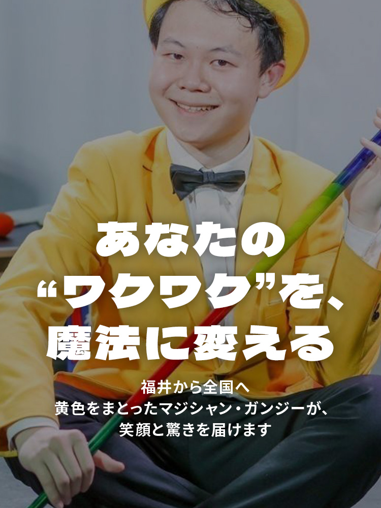 マジシャンガンジーのマジックショーは、福井県を拠点に全国どこへでも飛んでいきます。